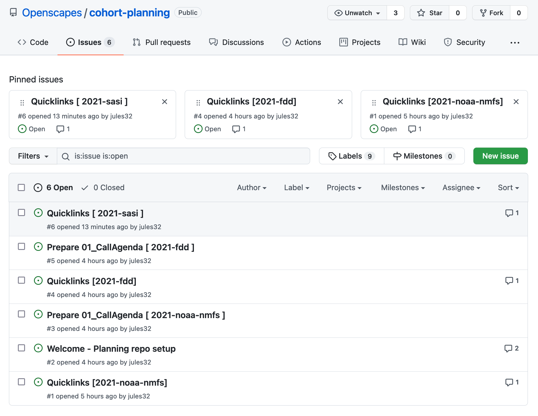 Core team contributions - we use the same tech and approaches in NASA and Openscapes core work, and thus work to improve systems and teach each other in both settings. Examples include refining project management, adding to documentation, improving GitHub Action/Quarto workflows, writing blog posts, reviewing other people’s work and giving feedback, participating in teaching/mentoring/coaching activities to build our skills.